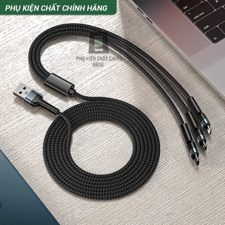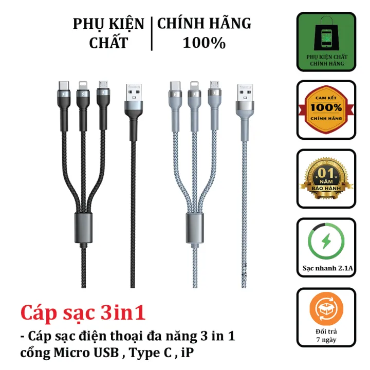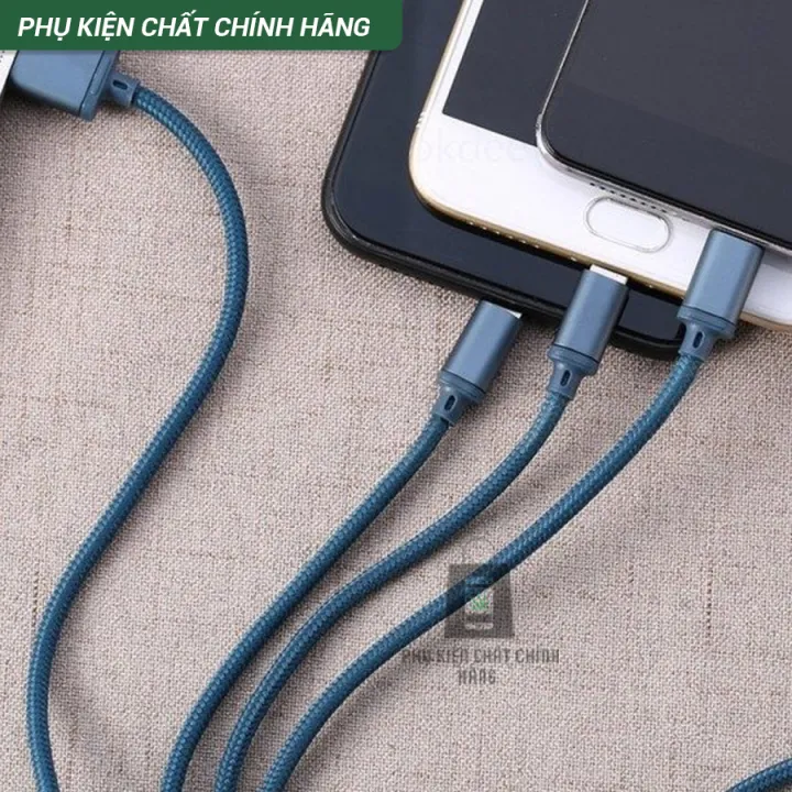 Đơn vị phân phối: Cáp sạc 3 đầu đa năng Rc 124th 3in1 REMAX dây bọc dù sạc cho iPhone, Samsung, Oppo, Xiaomi- Dây sạc Remax