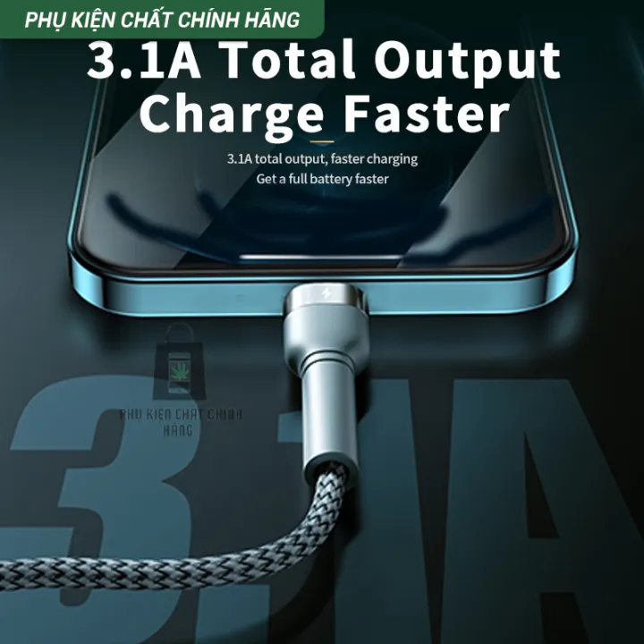 Tổng nguồn điện tích hợp của cáp là 3.1A. Qua đó, hiệu năng sạc thiết bị được nhanh hơn đáng kể.