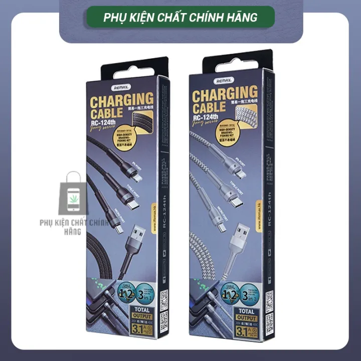 PHỤ KIỆN CHẤT CHÍNH HẴNG CAM KẾT SẢN PHẨM CÁP SẠC 3 ĐẦU ĐA NĂNG 3IN1 REMAX RC 124TH SẢN PHẨM 100%CHÍNH HÃNG
