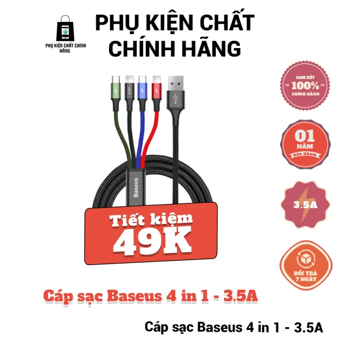 Đặc tính sản phẩm Dây sạc đa năng Baseus 4 in 1 hỗ trợ dòng điện lên tới 3.5A, hàng cao cấp chính hãng 100% - BH 12T