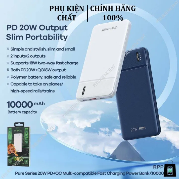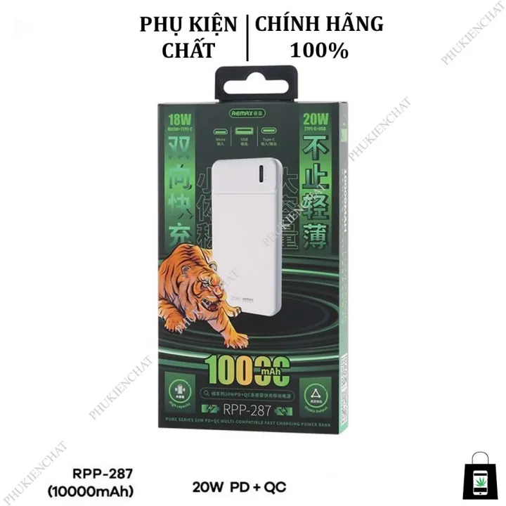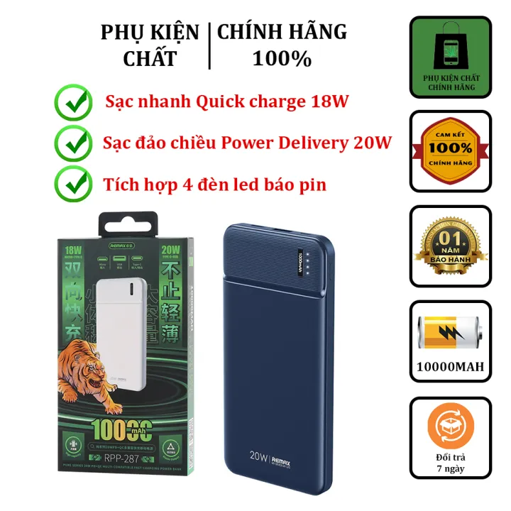 Đặc tính sản phẩm Pin Sạc Dự Phòng Sạc Nhanh Remax RPP-287 10.000mAh hỗ trợ QC 18W và PD 20W Full Hộp Bảo Hành 12 Tháng.