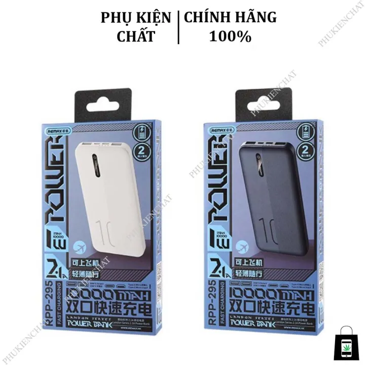 -Sạc Dự Phòng Remax RPP-295 10.000mAh Chính Hãng dùng cho các loại điện thoại hỗ trợ sạc nhanh 10w thiết kế 2 cổng sạc ra hỗ trợ 2 thiết bị cùng 1 lúc.