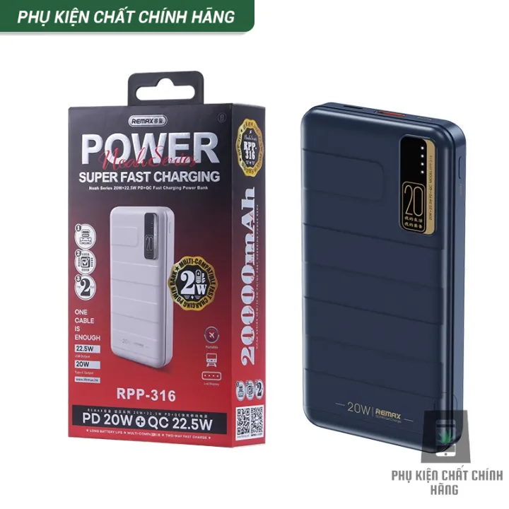 Đặc tính sản phẩm Sạc Dự Phòng Remax RPP-316 20000Mah (Sạc Nhanh QC3.0 18W, 22.5W, PD20W, VOOC 2.0) Cao Cấp BH 1 Năm