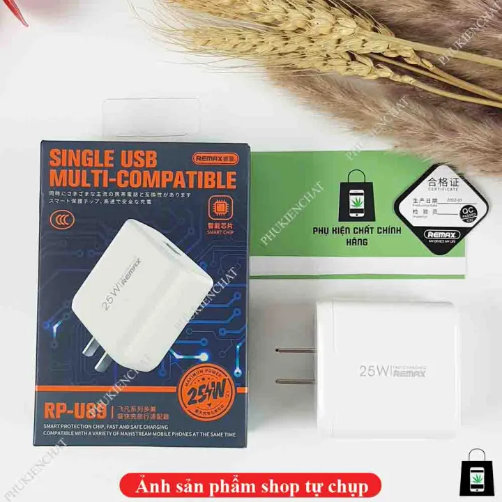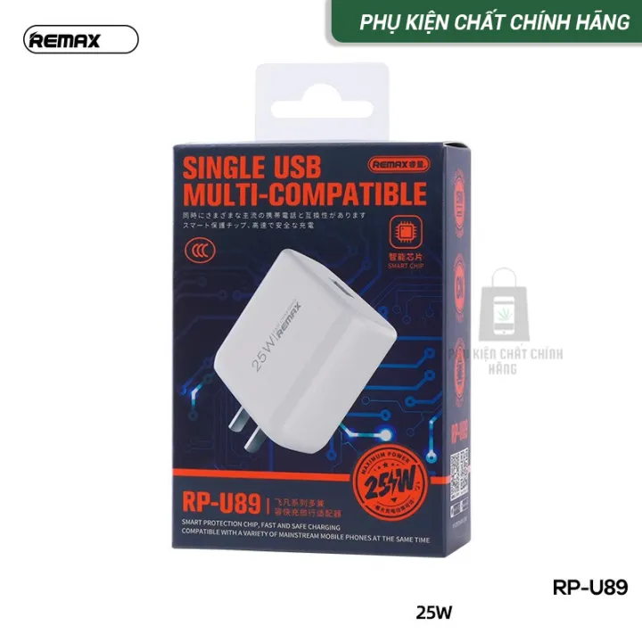 THÔNG TIN SẢN PHẨM: Củ sạc nhanh Remax RP-U89 cổng USB 25W hàng chuẩn hãng bảo hàng 12 tháng.