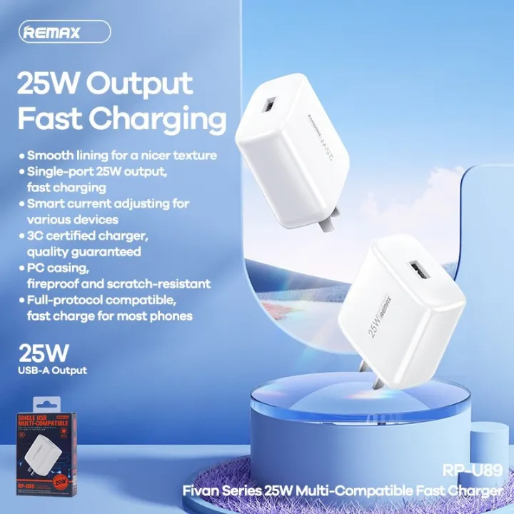 Đặc tính sản phẩm Củ sạc nhanh Remax RP-U89 cổng USB 25W hàng chuẩn hãng bảo hàng 12 tháng.